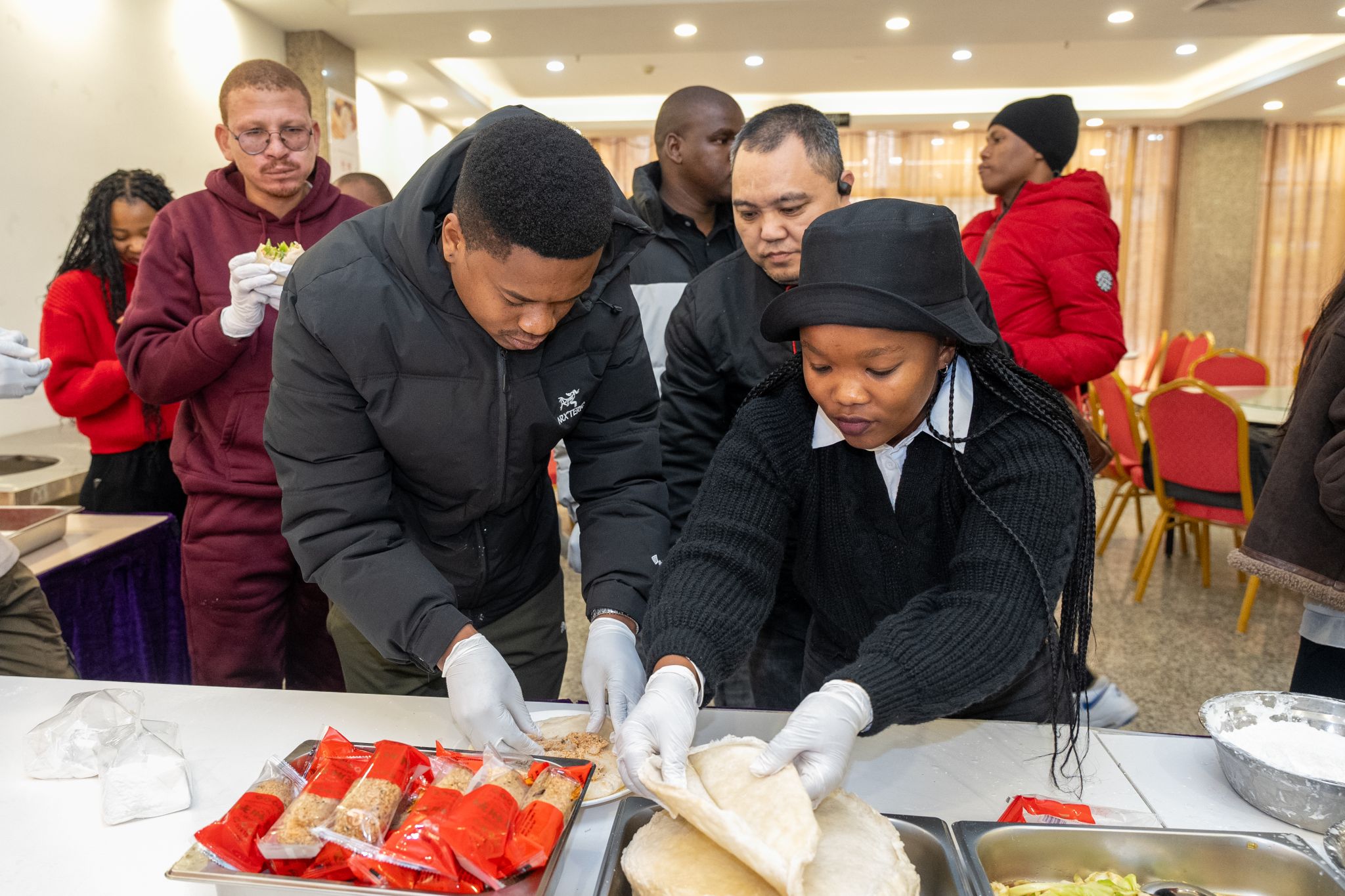 活动中,南非学员也端出家乡风味:香气四溢的Braai烧烤与清新爽口的Chakalaka沙拉、甜蜜蜜的PAP玉米饭,与中国美食同台亮相。学员Thanduxolo Lovepeace坦言,南非饮食辛辣重香料,中国菜则更加清爽可口,“润饼和饺子我都很喜欢!中国美食与南非菜肴同时上场,这正是文化交流的意义,我们都在学习彼此的‘味道’。”