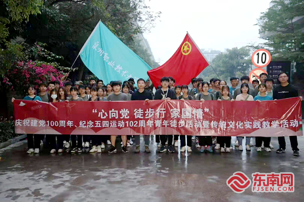 东南网5月4日讯(本网记者 潘贤利 通讯员 洪春锦)5月4日凌晨5:04,本应是静谧的假期清晨,但泉州职业技术大学晋江校区却格外的热闹。100名师生早早起床、整装待发,他们将徒步20公里前往晋江新塘街道梧林传统村落,用脚步丈量城市红色旅程,用心灵感受爱国热血温度,并完成传统文化实践活动,用一场特别的行动庆祝建党100周年、纪念五四运动102周年。