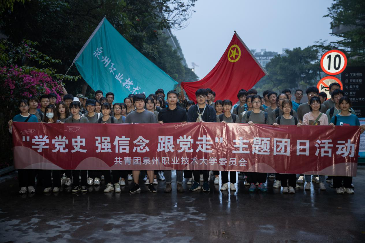 5月4日清晨,泉州职业技术大学百名师生,从晋江内坑校园出发,徒步20公里,来到晋江新塘街道梧林传统村落,开展主题为“心向党徒步行家国情”青年徒步活动暨传统文化实践教学活动,用脚步丈量城市红色旅程,用这场特别的行动,庆祝建党100周年、纪念五四运动102周年。