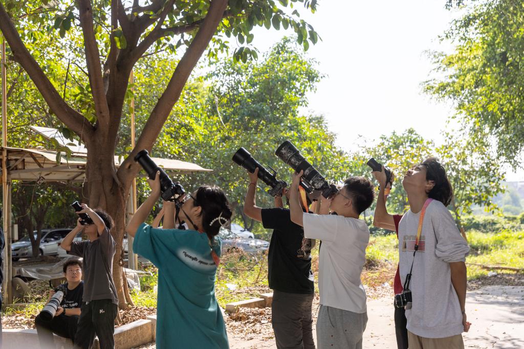 “以动物视角来拍动物。”讲座前,他背上摄影器材,带着泉大学子,在生态校园中拍摄鸟类、昆虫。在实际操作中,他传授同学们各种摄影技巧,手把手教大家光影运用,告诉大家构图的诀窍,让大家深入了解动物摄影。