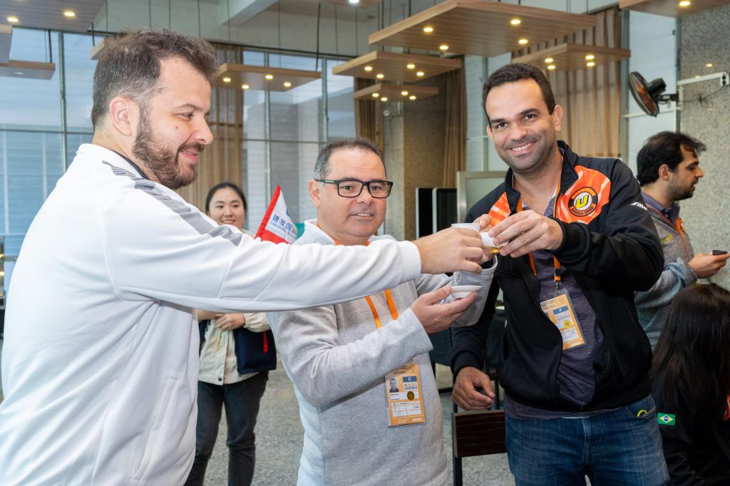 ▲ 来自马来西亚的留学生魏俊恩、许优杰、田展行,在新生开学典礼暨迎新晚会上,近距离感受中华传统文化的独特魅力,与其他泉大学子共同带来一场精彩演出