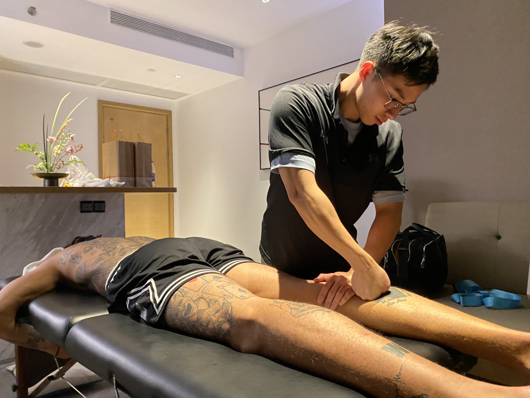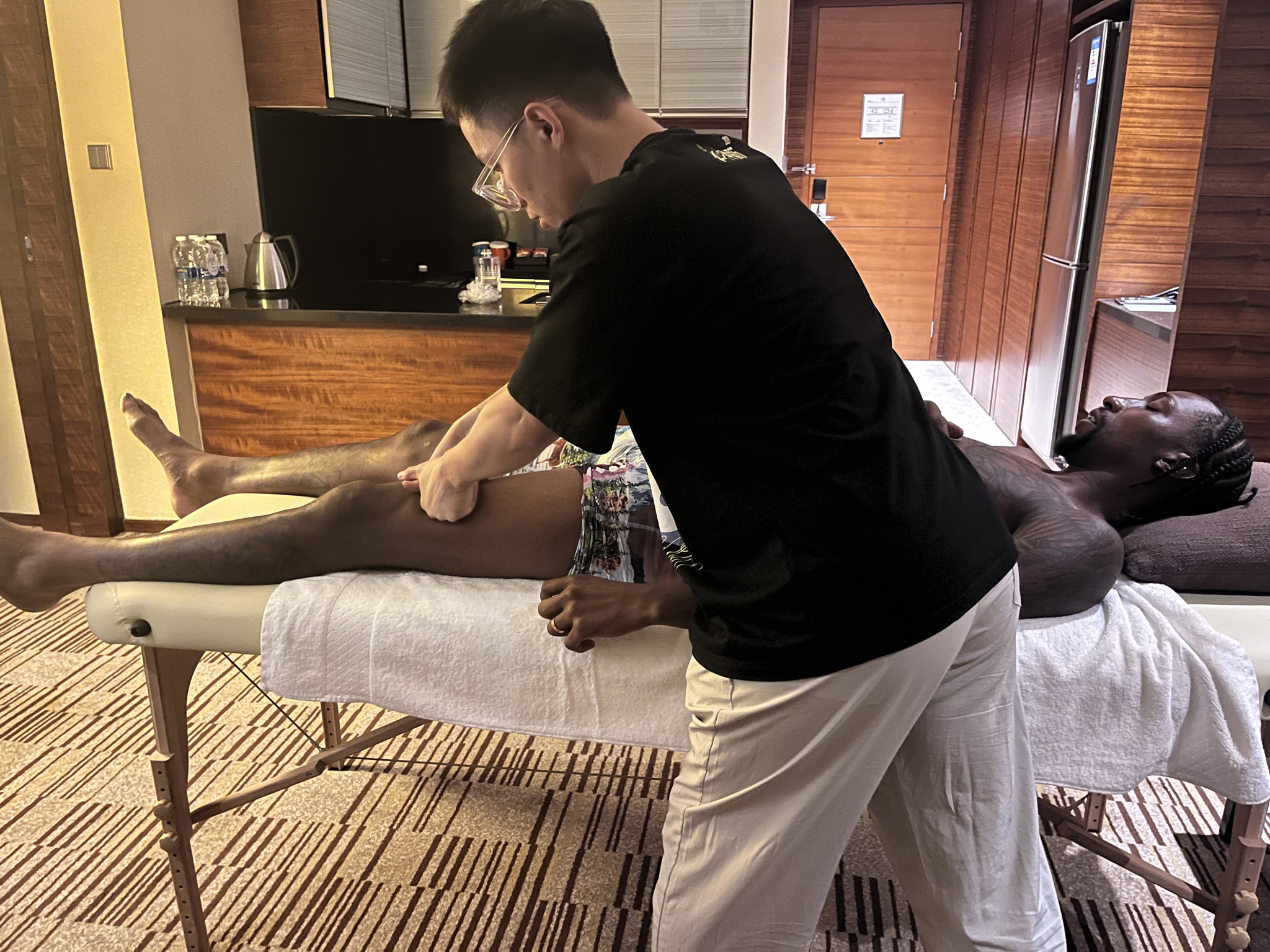 “我将课堂所学的知识运用到实际中,帮波普处理肌肉扳机点,进行筋膜手法处理。”在服务波普后,学生周高杨说。而吴厚正观察到,NBA球员的肌肉状态很有弹性,不同于普通运动员。何玮豪则坦言,这是对专业理论的深化和对实践经验的积累。