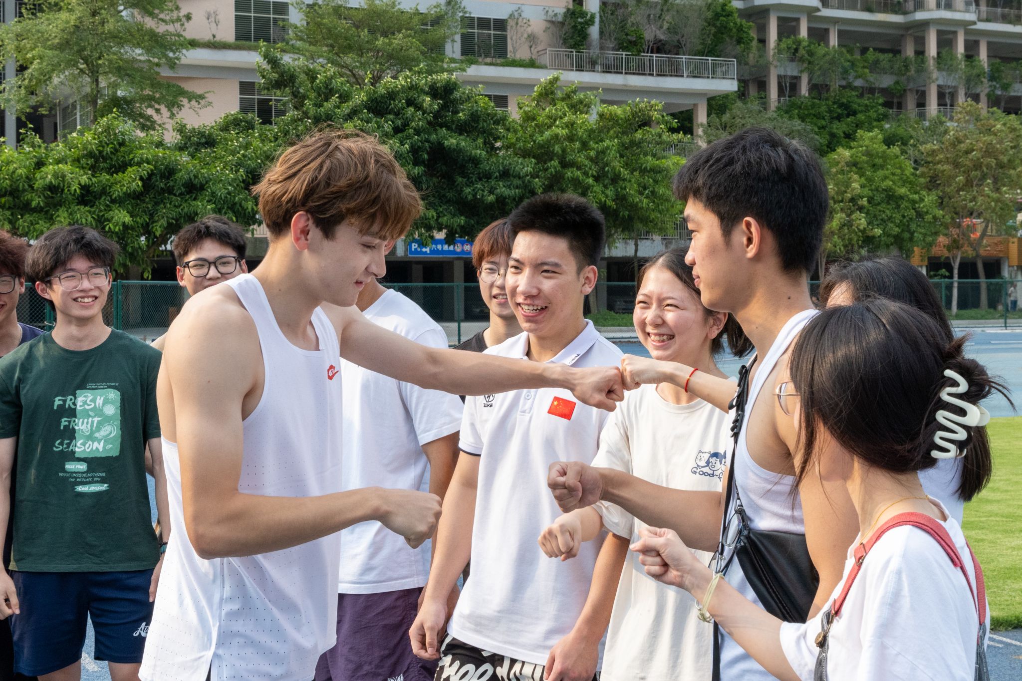 ▲ “中国飞人”艾力西尔与学生互动