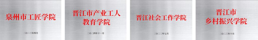 ◀ 全国首批、福建省目前唯一的本科层次职业教育试点 ◀ 晋江市域产教联合体(国家级)牵头高校◀ 工信部首批根技术联合创新人才产教融合基地 ◀ 教育部“一站式”学生社区综合管理模式建设自主试点单位 ◀ 全国非遗教育特色院校 ◀ 全国高职院校“一校一品”体育工作示范基地 ◀ 全国贫困村大学生村官培训基地 ◀ 福建省高校“三全育人”综合改革试点高校 ◀ 福建省首家生态文明建设示范校 ◀ 福建省职业教育先进单位 ◀ 福建省级文明学校 ◀ 福建省职业技能鉴定工作先进单位 ◀ 福建省民办高校规范办学评估第一名 ◀ 泉州市首个高技能数字人才培养基地