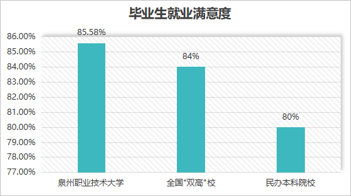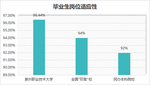 五位一体,护航就业。学校高度重视毕业生就业创业工作,坚持全员参与,形成齐抓共管的就业创业工作格局,坚持完善机制,构建科学高效的就业创业工作体系,形成了组织保障、人才培养、就业服务、创新创业、就业跟踪“五位一体”的服务体系,坚持“扎根晋江、服务泉州、面向福建”,全力打造“就业质量”工程,为区域产业发展提供人才支撑。本校2024届超过90%以上本科毕业生在福建就业创业,2024届本科毕业生工作与专业相关度、岗位适应性、就业满意度均高于全国“双高”校和民办本科毕业生。